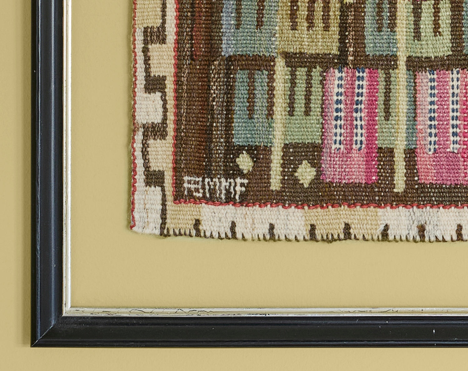 Märta Måås-Fjetterström (1873-1941), considered to be Sweden’s greatest textile artist, founded her studio in the southern part of Sweden in 1919, where artisan weavers learned to interpret Måås-Fjetterström’s many watercolour sketches into hand-woven masterpieces of knotted piles and ‘rölakan’ flatweave rugs, wall hangings and tapestries of exceptional quality and craftsmanship.